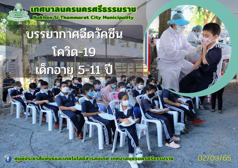 | เทศบาลนครนครศรีธรรมราช ให้บริการฉีดวัคซีนป้องกันโรคโควิด-19 สำหรับนักเรียน อายุ 5-11 ปี |