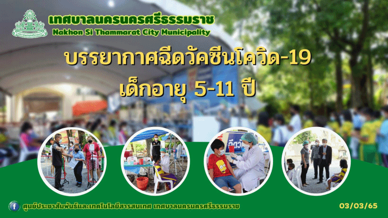 | เทศบาลนครนครศรีธรรมราช ให้บริการฉีดวัคซีนป้องกันโรคโควิด-19 สำหรับนักเรียน อายุ 5-11 ปี |