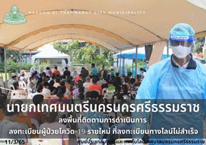 | นายกเทศมนตรีนครนครศรีธรรมราชลงพื้นที่ติดตามการดำเนินการ ลงทะเบียนผู้ป่วยโควิด-19 รายใหม่ ที่ลงทะเบียนทางไลน์ไม่สำเร็จ |