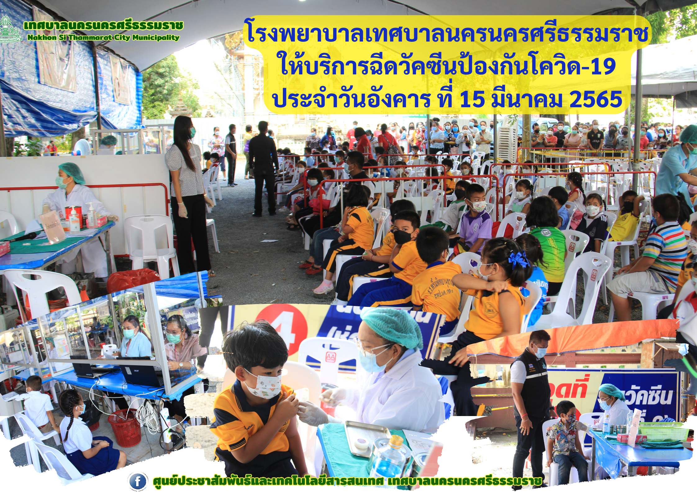 | โรงพยาบาลเทศบาลนครนครศรีธรรมราช ดำเนินการฉีดวัคซีนป้องกันโควิด-19 สำหรับนักเรียน อายุ 5-11 ปี ประจำวันอังคาร ที่ 15 มีนาคม 2565 |
