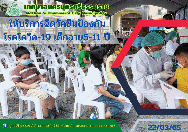 | เทศบาลนครนครศรีธรรมราช ให้บริการฉีดวัคซีนป้องกันโรคโควิด-19 สำหรับนักเรียน อายุ 5-11 ปี |
