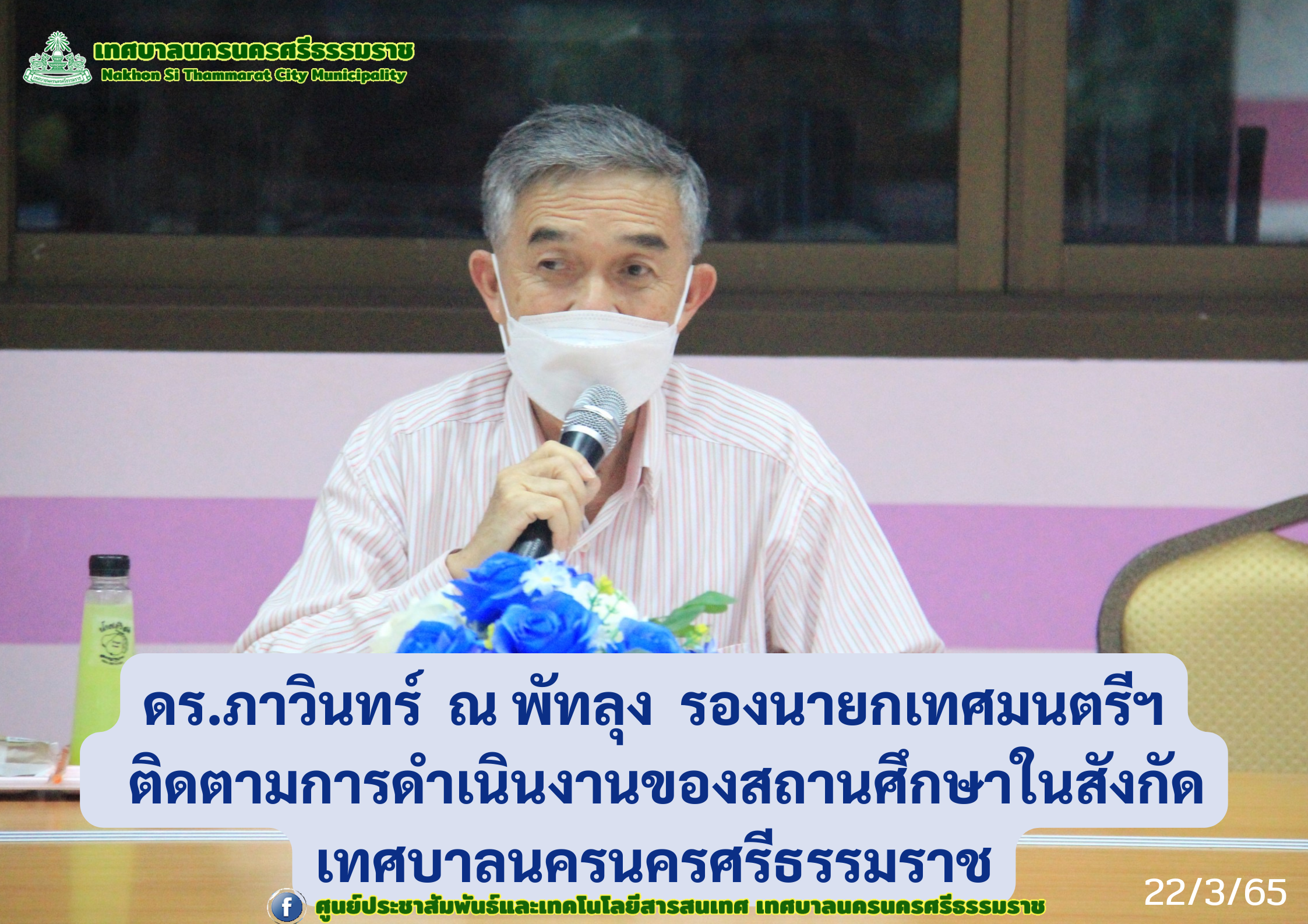 | ดร.ภาวินทร์ ณ พัทลุง รองนายกเทศมนตรีนครนครศรีธรรมราช ลงพื้นที่ ติดตามการดำเนินงานของโรงเรียนรเทศบาลวัดศรีทวี และโรงเรียนเทศบาลวัดท้าวโคตร |