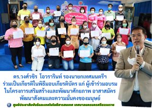 | รองนายกเทศมนตรีนครนครศรีธรรมราช ร่วมเป็นเกียรติในพิธีมอบเกียรติบัตร แก่ ผู้เข้าร่วมอบรม โครงการเสริมสร้างและพัฒนาศักยภาพ อาสาสมัครพัฒนาสังคมและความมั่นคงของมนุษย์ |