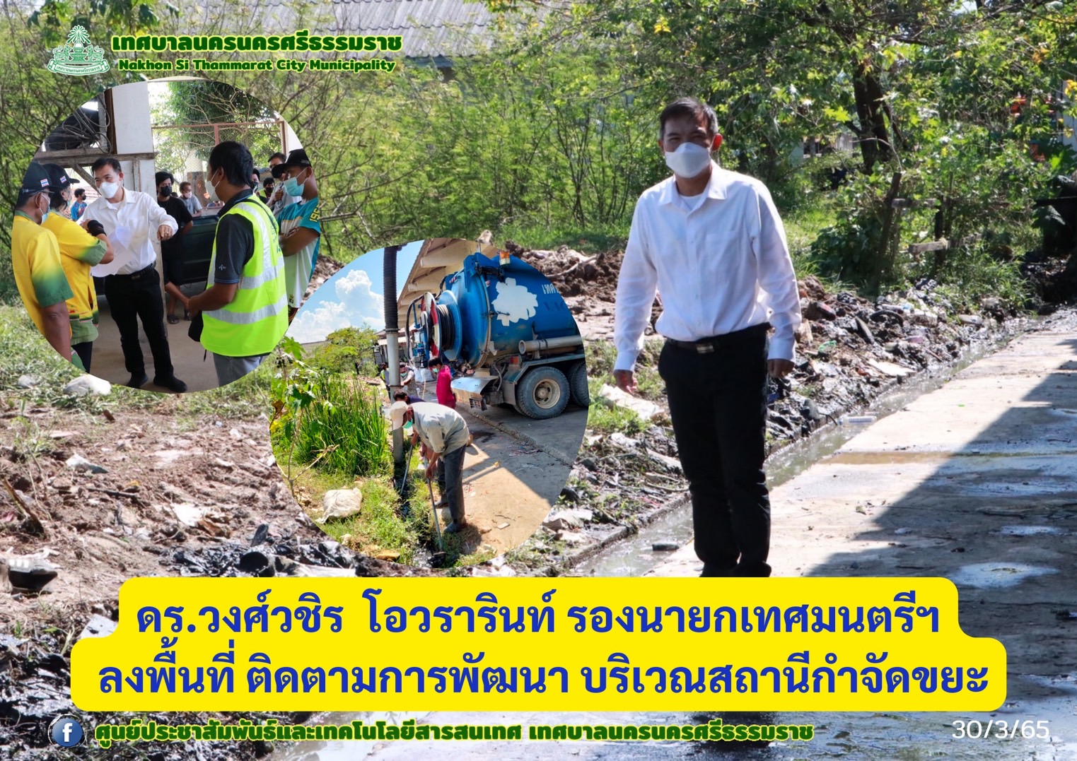 | วันพุธ ที่ 30 มีนาคม 2565 เวลา 14.00 น. ดร.วงศ์วชิร โอวรารินท์ รองนายกเทศมนตรีนครนครศรีธรรมราช ลงพื้นที่ ติดตามการพัฒนา บริเวณสถานีกำจัดขยะโดยการ ฉีดล้างทำความสะอาด ลอกคูระบายน้ำ ดูดสิ่งปฏิกูลภายในท่อระบายน้ำ เป็นต้น อีกทั้ง มอบโอวาทในการทำงาน ให้แก่เจ้าหน้าที่ เก็บขยะอีกด้วย