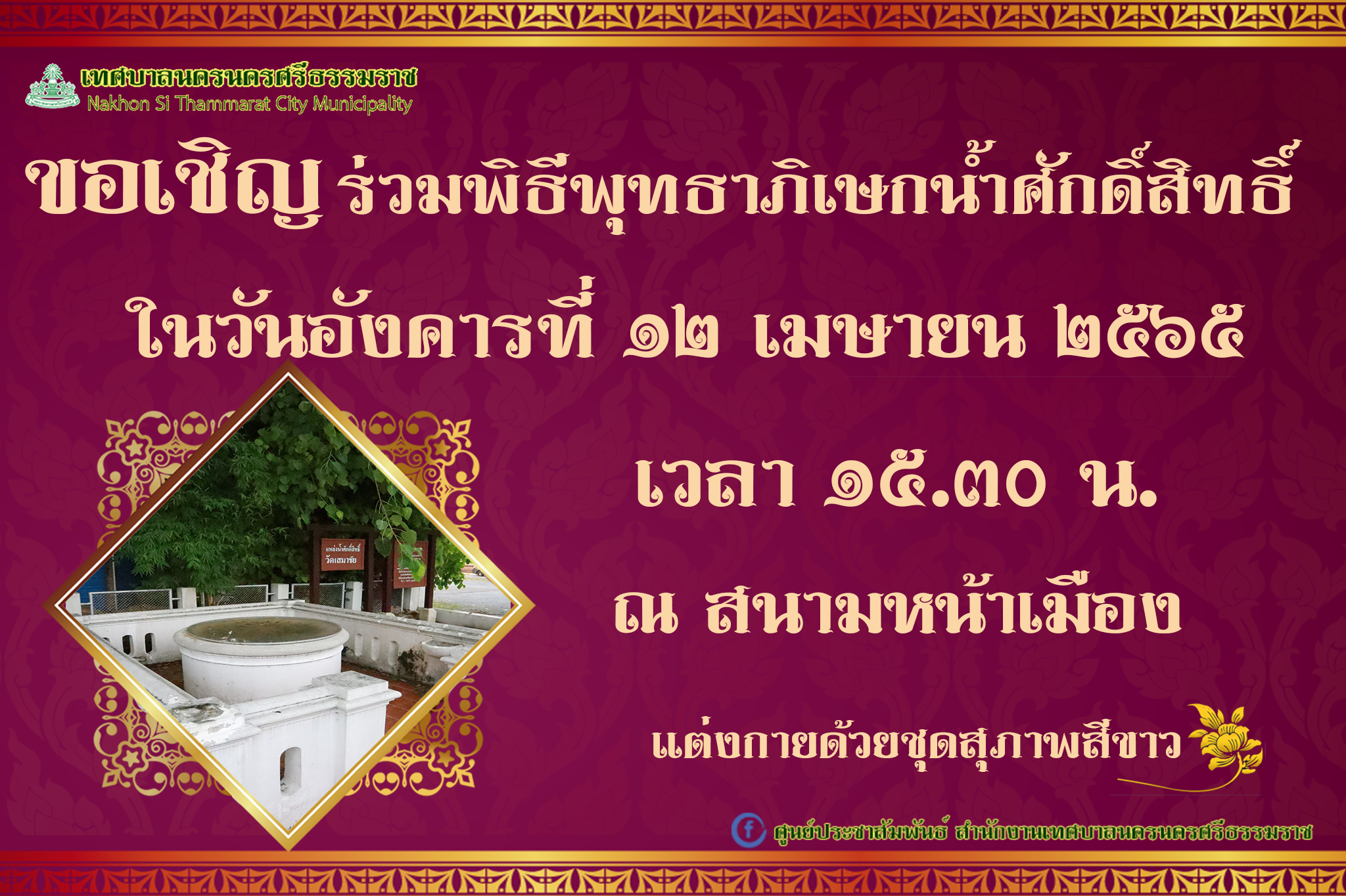 | เทศบาลนครนครศรีธรรมราช ขอเชิญประชาชนร่วมพิธีพุทธาภิเษกน้ำศักดิ์สิทธิ์ |