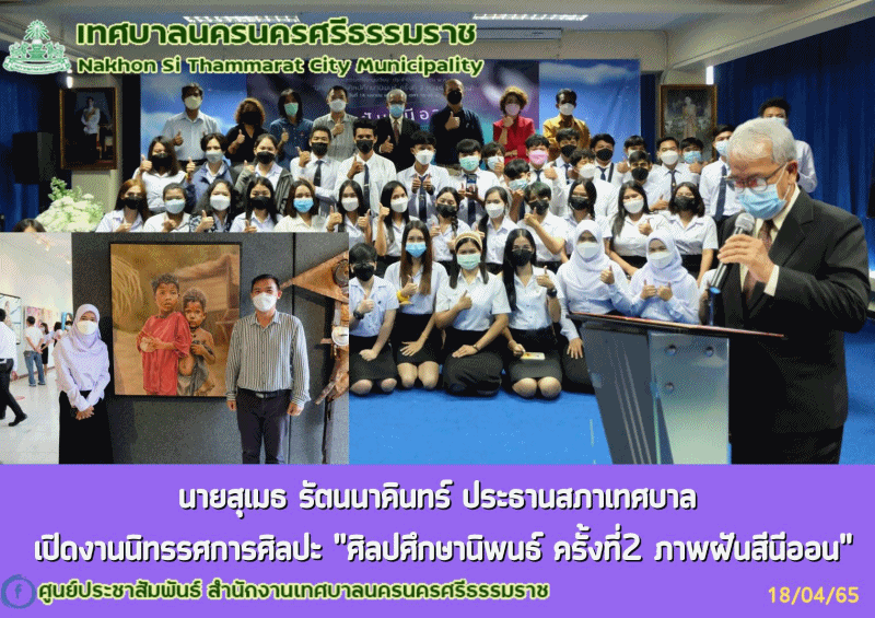 | นายสุเมธ รัตนนาคินทร์ ประธานสภาเทศบาลนครนครศรีธรรมราช ประธานเปิดงานนิทรรศการศิลปะ “ศิลปศึกษานิพนธ์ ครั้งที่2 ภาพฝันสีนีออน” |