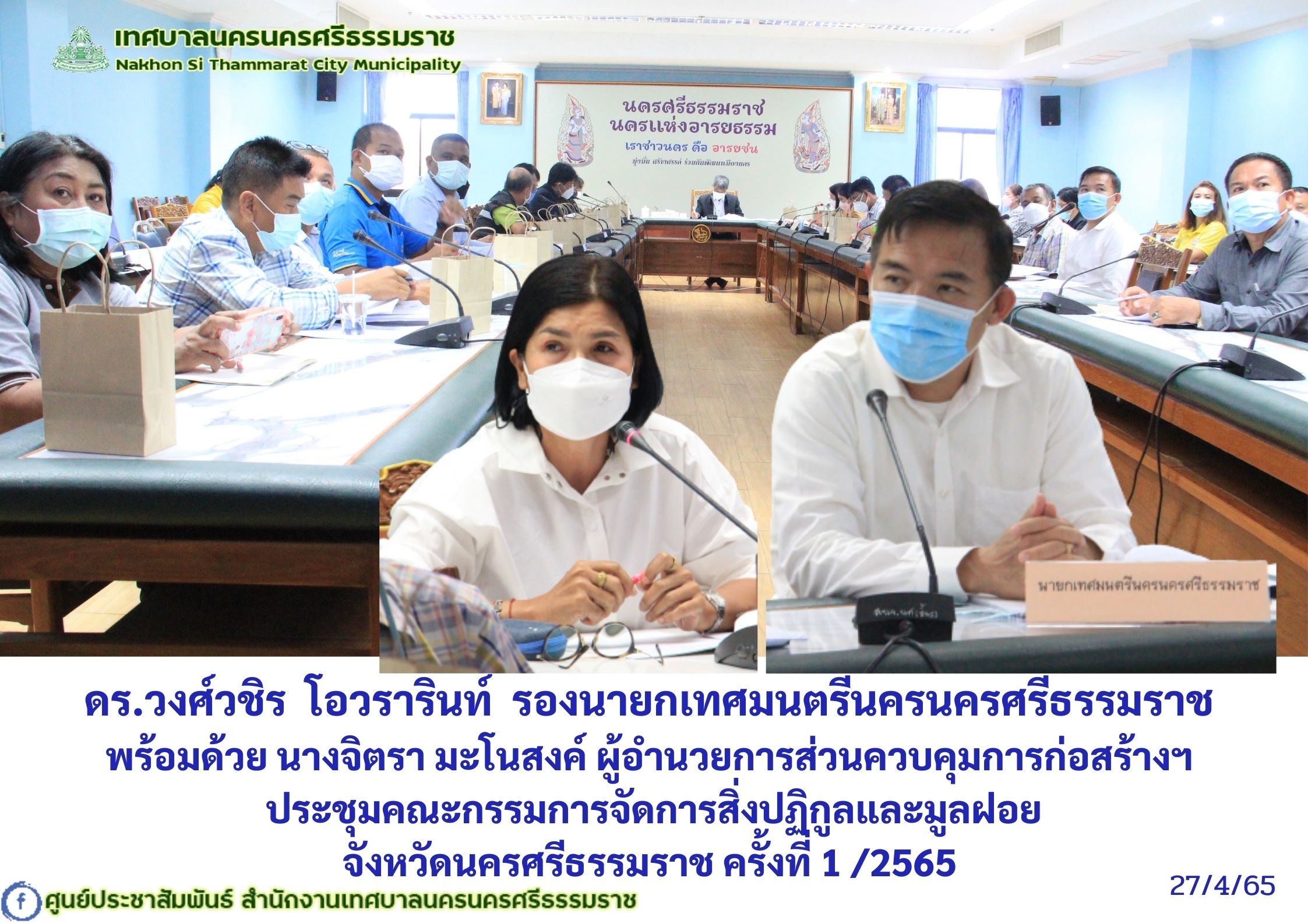 | ดร.วงศ์วชิร โอวรารินท์ รองนายกเทศมนตรีนครนครศรีธรรมราช พร้อมด้วย นางจิตรา มะโนสงค์ ผู้อำนวยการส่วนควบคุมการก่อสร้างฯ ประชุมคณะกรรมการจัดการสิ่งปฏิกูลและมูลฝอยจังหวัดนครศรีธรรมราช ครั้งที่ 1 /2565 |