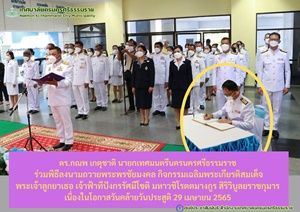 | นายกเทศมนตรีนครนครศรีธรรมราช ร่วมพิธีลงนามถวายพระพรชัยมงคล กิจกรรมเฉลิมพระเกียรติสมเด็จพระเจ้าลูกยาเธอ เจ้าฟ้าทีปังกรรัศมีโขติ มหาวชิโรตตมางกูร สิริวิบูลยราชกุมาร |
