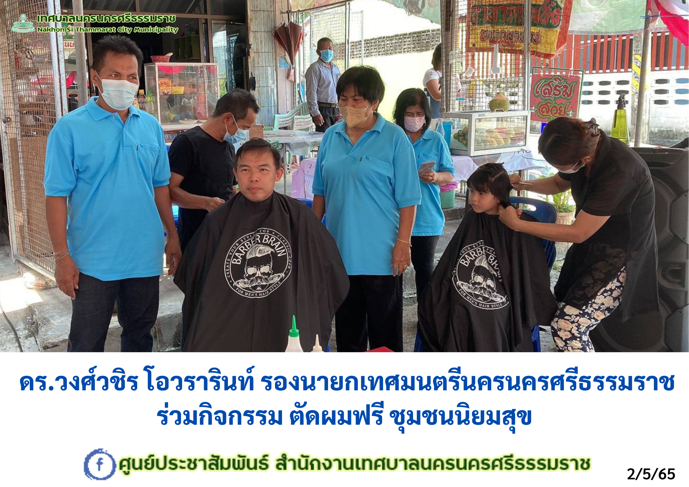 | ดร.วงศ์วชิร โอวรารินท์ รองนายกเทศมนตรีนครนครศรีธรรมราช ร่วมกิจกรรม ตัดผมฟรี ชุมชนนิยมสุข |