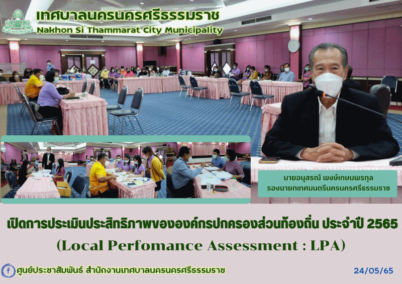 | วันอังคาร ที่24 พฤษภาคม 2565 เวลา 14.00 น. นายอนุสรณ์ พงษ์เกษมพรกุล รองนายกเทศมนตรีนครนครศรีธรรมราช ประธานเปิดการประเมินประสิทธิภาพขององค์กรปกครองส่วนท้องถิ่น (Local Perfomance Assessment : LPA) ประจำปี 2565 ณ ห้องประชุมเทศบาลนครนครศรีธรรมราช ชั้น5 ตามที่จังหวัดนครศรีธรรมราช แจ้งการประเมินประสิทธิภาพขององค์กรปกครองส่วนท้องถิ่นนั้น เพื่อรองรับการประเมินประสิทธิภาพขององค์กรปกครองส่วนท้องถิ่น ................... ภาพ//ข่าว//จันทร์จิรา ตรวจทาน//อารีรัตน์ |