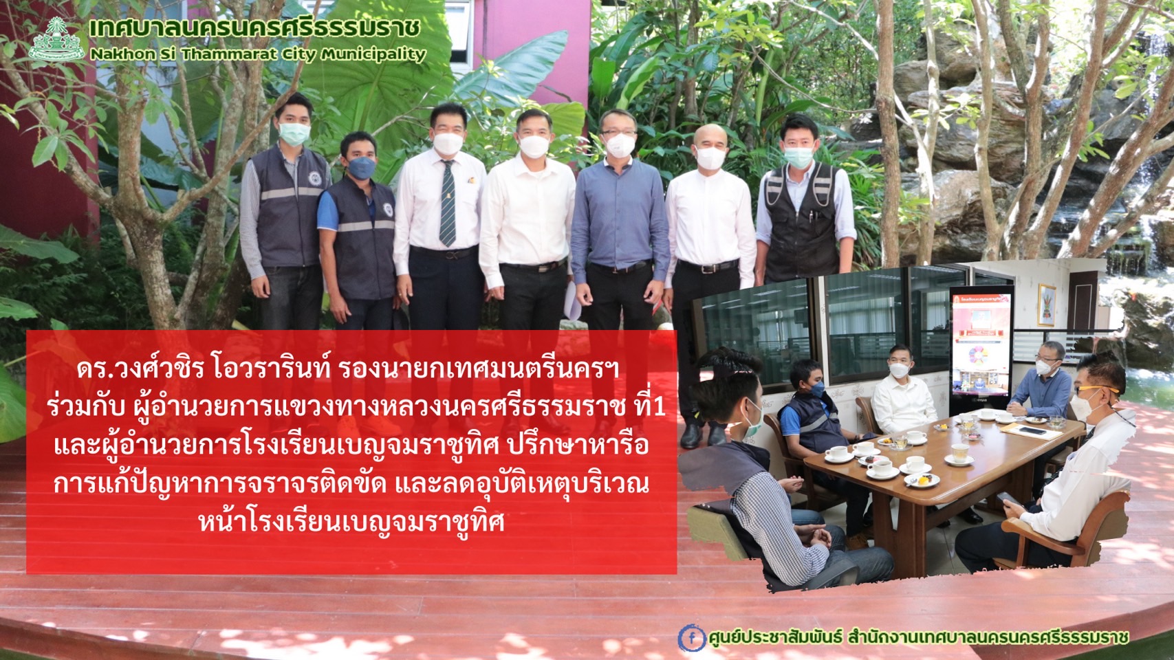 | ดร.วงศ์วชิร โอวรารินท์ รองนายกเทศมนตรีนครนครศรีธรรมราช ร่วมหารือเกี่ยวกับการแก้ปัญหาการจราจรติดขัด เพื่อลดอุบัติเหตุบริเวณหน้าโรงเรียนเบญจมราชูทิศ |