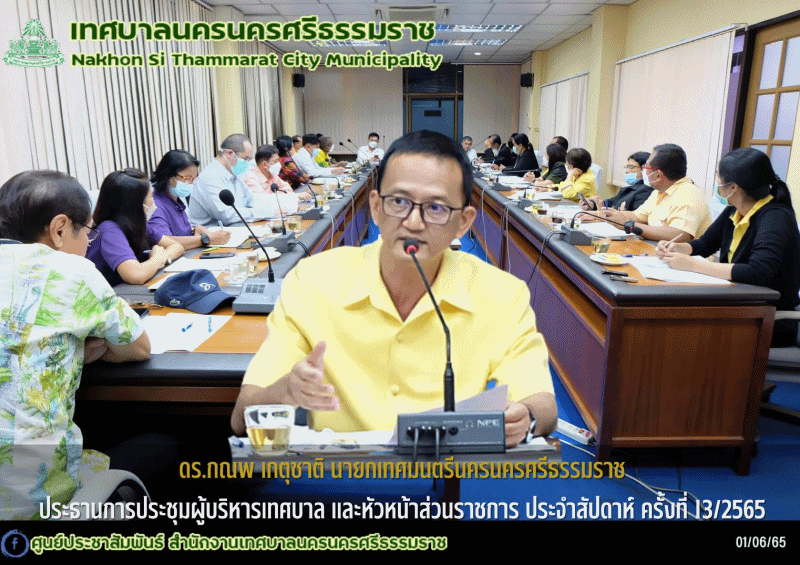 | ดร.กณพ เกตุชาติ นายกเทศมนตรีนครนครศรีธรรมราช ประชุมผู้บริหารเทศบาล และหัวหน้าส่วนราชการ ประจำสัปดาห์ ครั้งที่ 13/2565 |