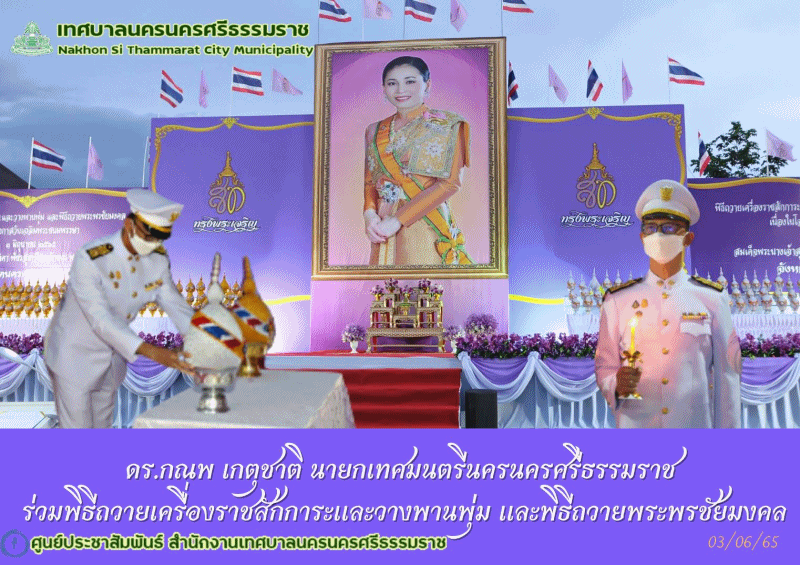 | ดร.กณพ เกตุชาติ นายกเทศมนตรีนครนครศรีธรรมราช ร่วมพิธีถวายเครื่องราชสักการะและวางพานพุ่ม และพิธีถวายพระพรชัยมงคล |