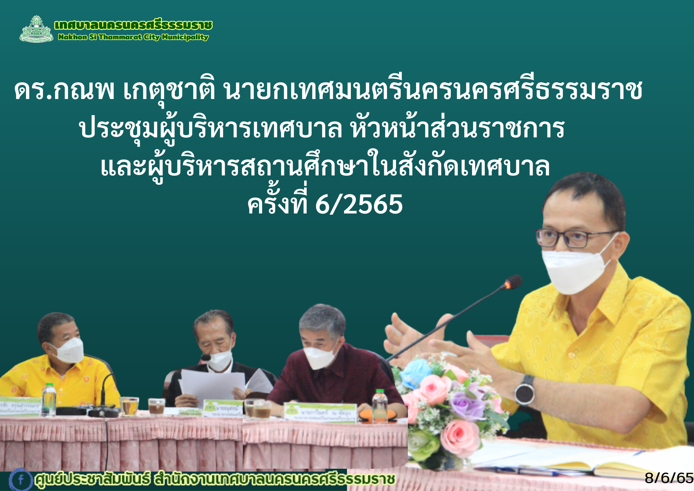 | ดร.กณพ เกตุชาติ นายกเทศมนตรีนครนครศรีธรรมราช ประชุมผู้บริหารเทศบาล หัวหน้าส่วนราชการ และผู้บริหารสถานศึกษาในสังกัดเทศบาล ครั้งที่ 6/2565