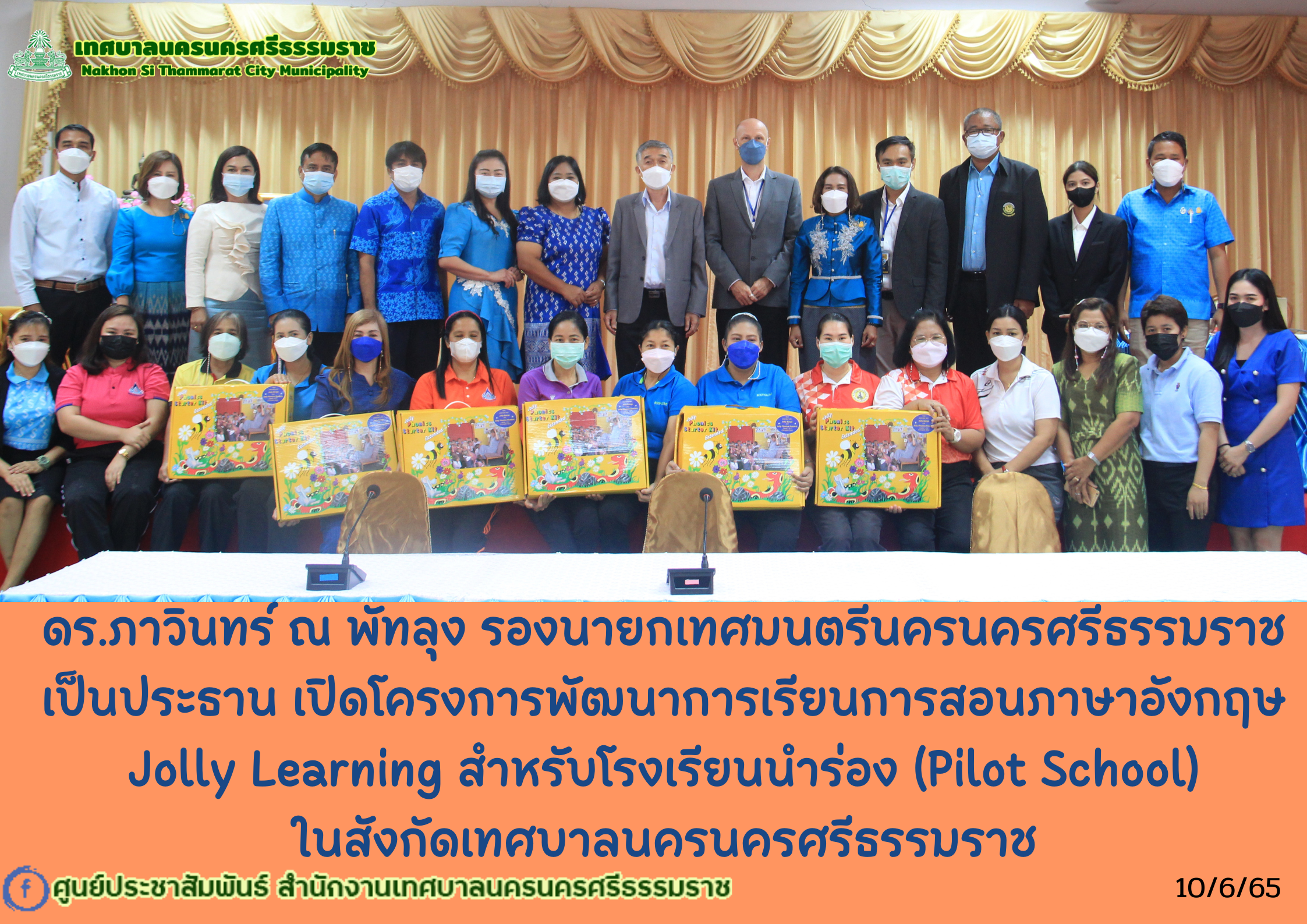 | ดร.ภาวินทร์ ณ พัทลุง รองนายกเทศมนตรีนครนครศรีธรรมราช เป็นประธาน เปิดโครงการพัฒนาการเรียนการสอนภาษาอังกฤษ Jolly Learning สำหรับโรงเรียนนำร่อง (Pilot School) ในสังกัดเทศบาลนครนครศรีธรรมราช |