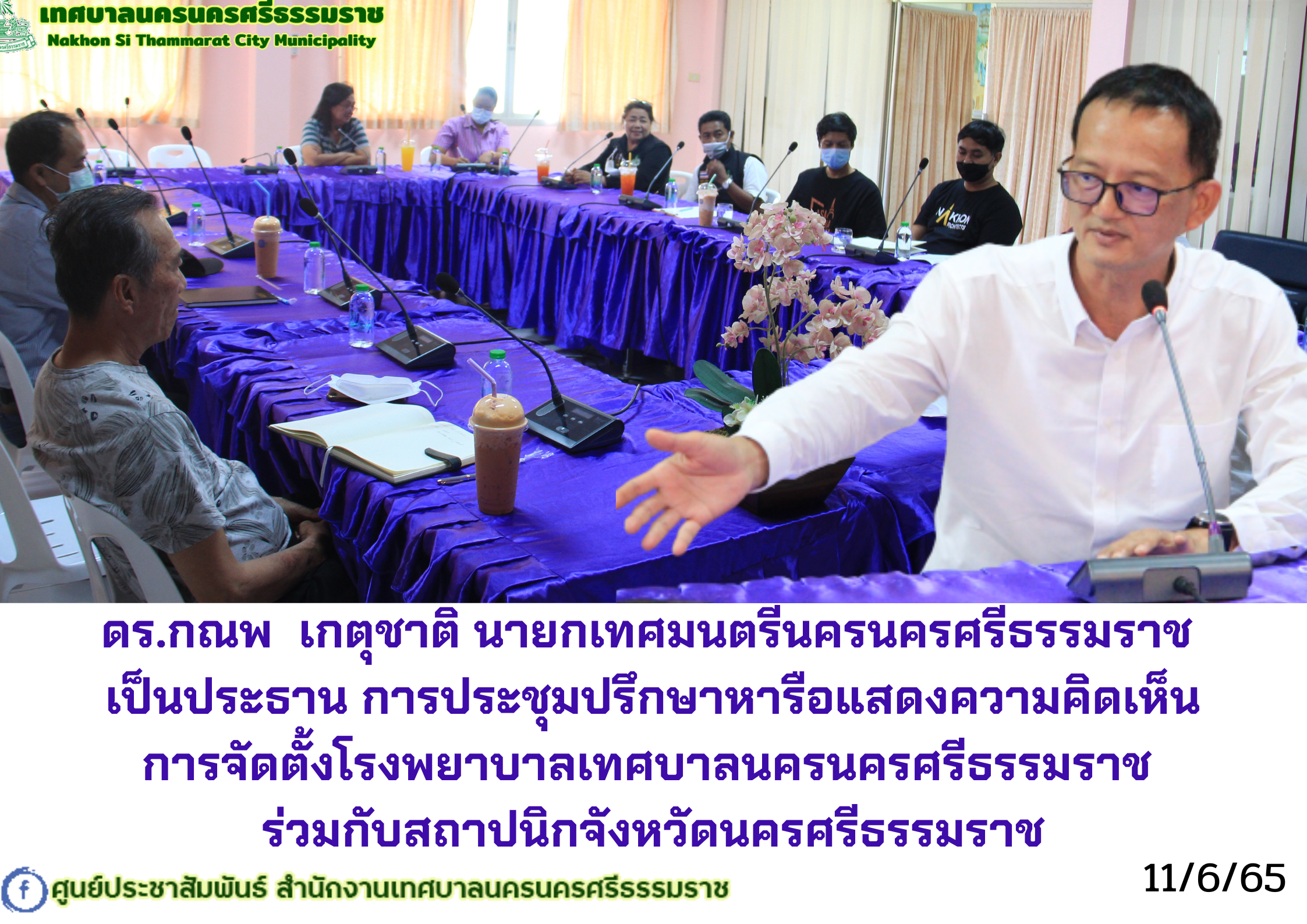 | ดร.กณพ เกตุชาตินายกเทศมนตรีนครนครศรีธรรมราช เป็นประธาน การประชุมปรึกษาหารือแสดงความคิดเห็นการจัดตั้งโรงพยาบาลเทศบาลนครนครศรีธรรมราช ร่วมกับสถาปนิกจังหวัดนครศรีธรรมราช |