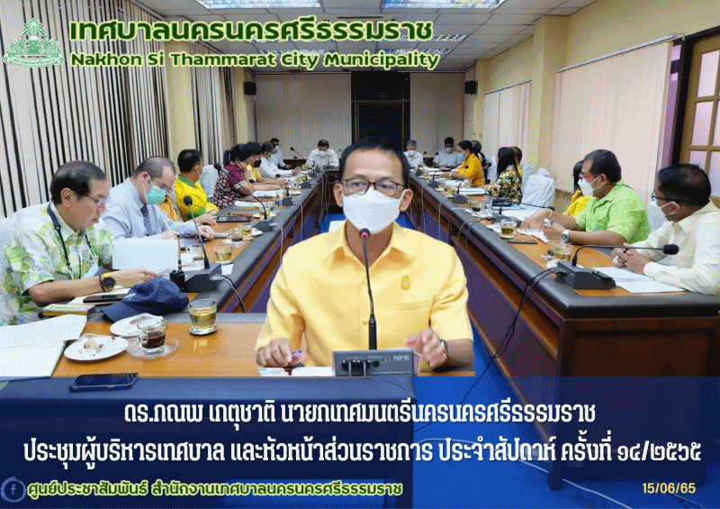 | ดร.กณพ เกตุชาติ นายกเทศมนตรีนครนครศรีธรรมราช ประชุมผู้บริหารเทศบาล และหัวหน้าส่วนราชการ ประจำสัปดาห์ ครั้งที่ 14/2565 |