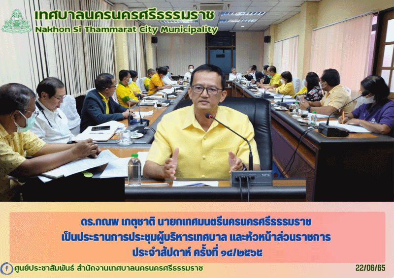 | ดร.กณพ เกตุชาติ นายกเทศมนตรีนครนครศรีธรรมราช ประชุมผู้บริหารเทศบาล และหัวหน้าส่วนราชการ ประจำสัปดาห์ ครั้งที่ 14/2565 |