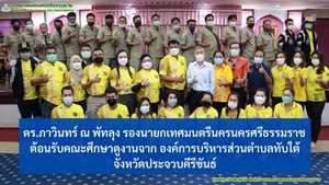 | ดร.ภาวินทร์ ณ พัทลุง รองนายกเทศมนตรีนครนครศรีธรรมราช ต้อนรับคณะศึกษาดูงานจาก องค์การบริหารส่วนตำบลทับใต้ จังหวัดประจวบคีรีขันธ์ |