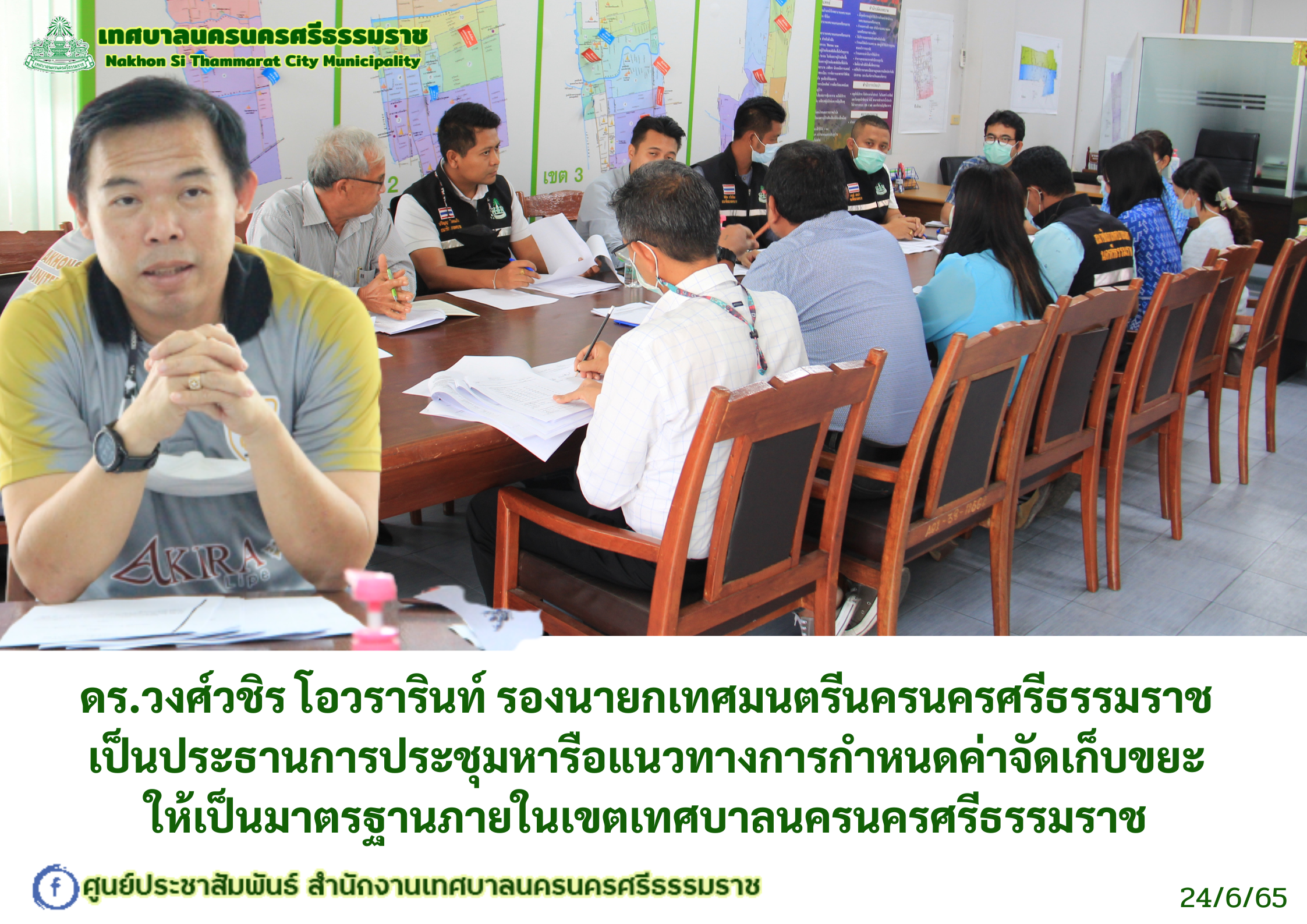 | ดร.วงศ์วชิร โอวรารินท์ รองนายกเทศมนตรีนครนครศรีธรรมราช เป็นประธานการประชุมหารือแนวทางการกำหนดค่าจัดเก็บขยะให้เป็นมาตรฐานภายในเขตเทศบาลนครนครศรีธรรมราช |