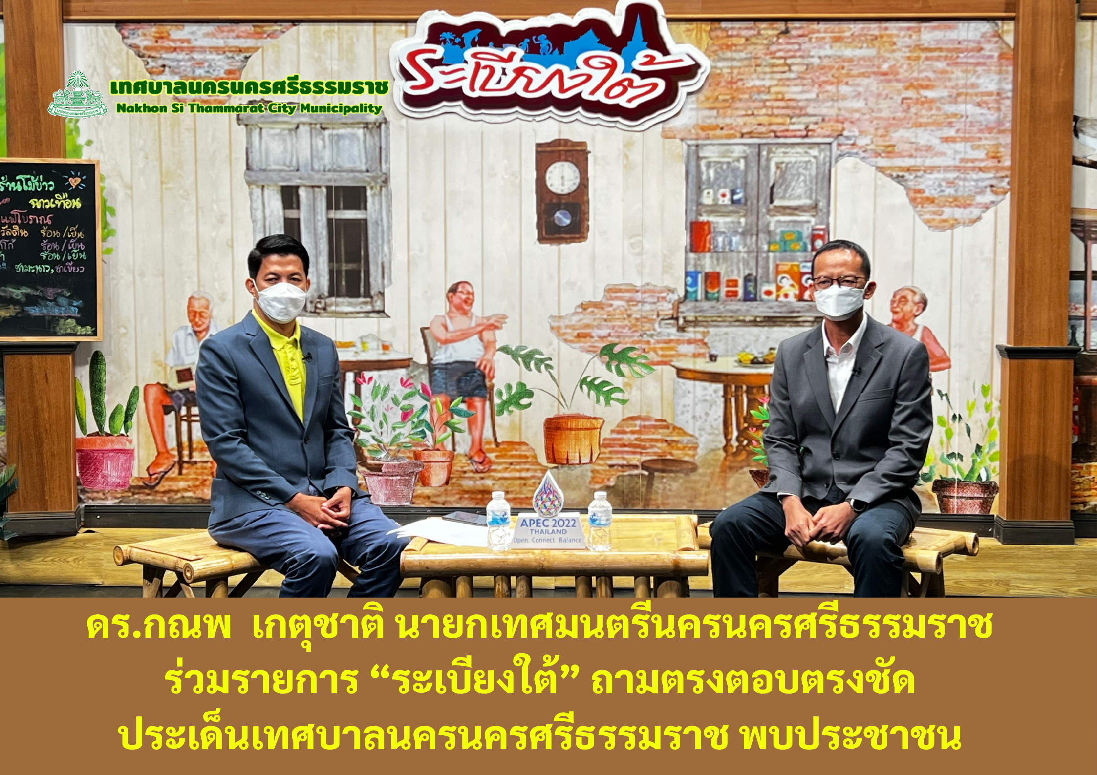 | ดร.กณพ เกตุชาติ นายกเทศมนตรีนครนครศรีธรรมราช ร่วมรายการ “ระเบียงใต้” ถามตรงตอบตรงชัด ประเด็นเทศบาลนครนครศรีธรรมราช พบประชาชน |