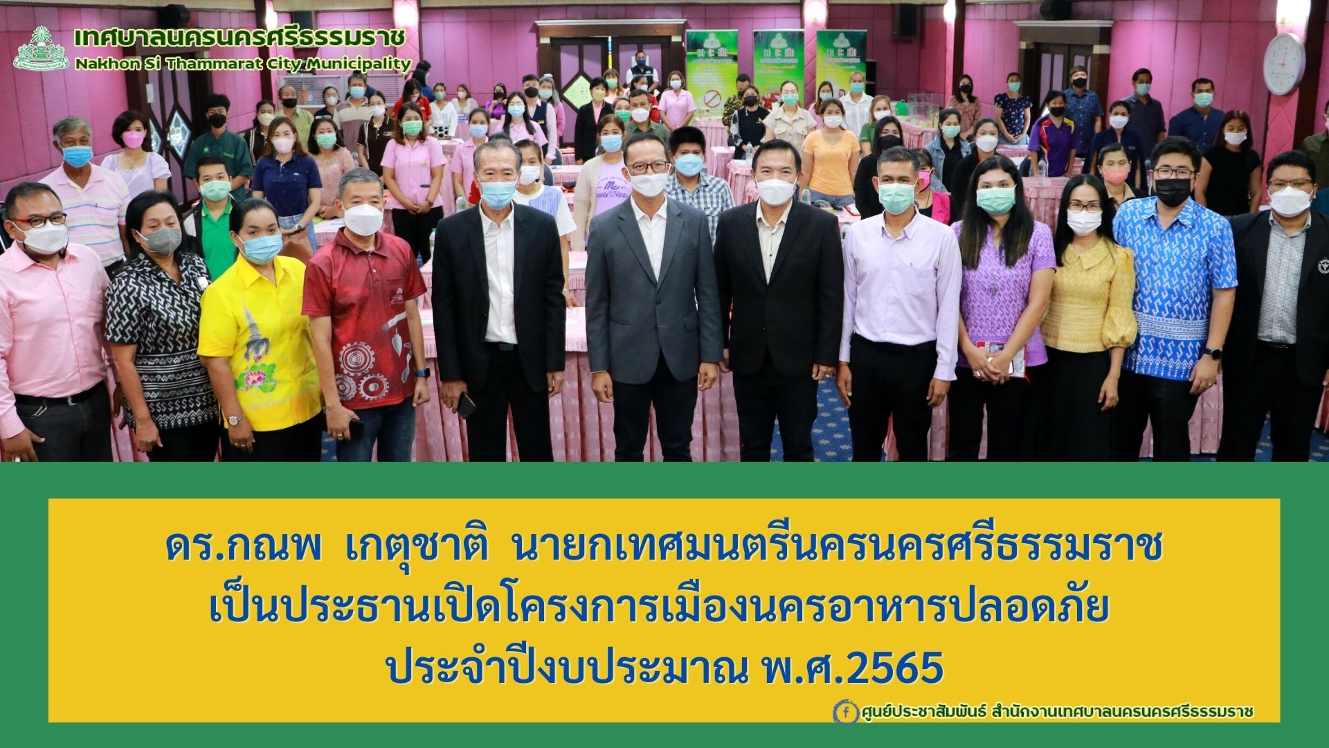 | วันอังคาร ที่28 มิถุนายน 2565 เวลา 08.00 น.ณ ห้องประชุมสำนักงานเทศบาลนครนครศรีธรรมราช ดร.กณพ เกตุชาติ นายกเทศมนตรีนครนครศรีธรรมราช เป็นประธานโครงการเมืองนครอาหารปลอดภัย ประจำปีงบประมาณ พ.ศ.2565 โดยมีวัตถุประสงค์เพื่อปรับปรุงยกระดับมาตรฐานด้านสุขลักษณะการจำหน่ายอาหารในสถานประกอบการอาหาร ตรวจสอบและเฝ้าระวังคุณภาพอาหารในสถานที่จำหน่ายอาหารและอาหารริมบาทวิถีผู้ประกอบกิจการและผู้สัมผัสอาหารในสถานที่จำหน่ายอาหาร โดยกำหนดการฝึกอบรมหลักสูตรสุขาภิบาลอาหารสำหรับผู้ประกอบกิจการ จำนวน 2 รุ่น ได้แก่ รุ่นที่ 1 และ รุ่นที่ 2 ในวันที่ 28 และ 29 มิถุนายน 2565 และสำหรับผู้สัมผัสอาหาร จำนวน 3 รุ่น ได้แก่ รุ่นที่ 1-3ในวันที่ 8 กรกฎาคม 2565 ในการนี้ จัดการดำเนินงานโครงการดังกล่าว โดยกองสาธารณสุข และสิ่งแวดล้อม