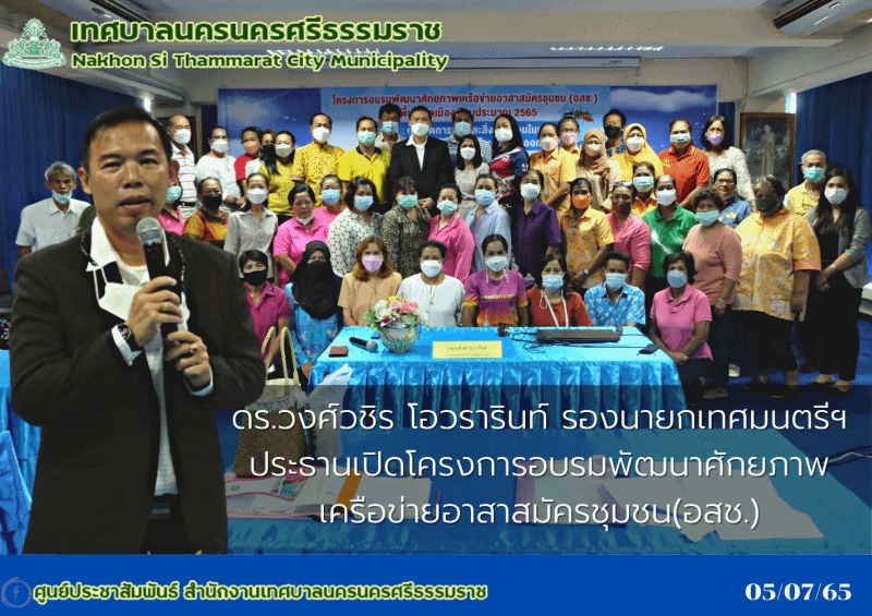 | ดร.วงศ์วชิร โอวรารินท์ รองนายกเทศมนตรีนครนครศรีธรรมราช ประธานเปิดโครงการอบรมพัฒนาศักยภาพเครือข่ายอาสาสมัครชุมชน (อสช.) |