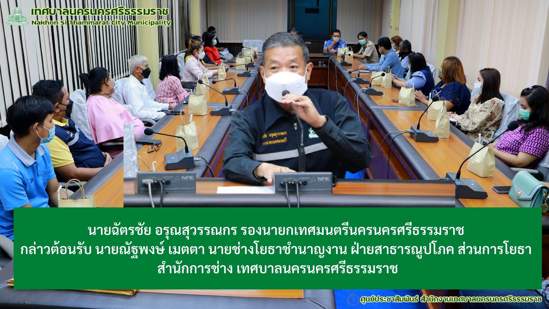 | รองนายกเทศมนตรีนครนครศรีธรรมราช กล่าวต้อนรับ นายณัฐพงษ์ เมตตา นายช่างโยธาชำนาญงาน ฝ่ายสาธารณูปโภค ส่วนการโยธา สำนักการช่างเทศบาลนครนครศรีธรรมราช |