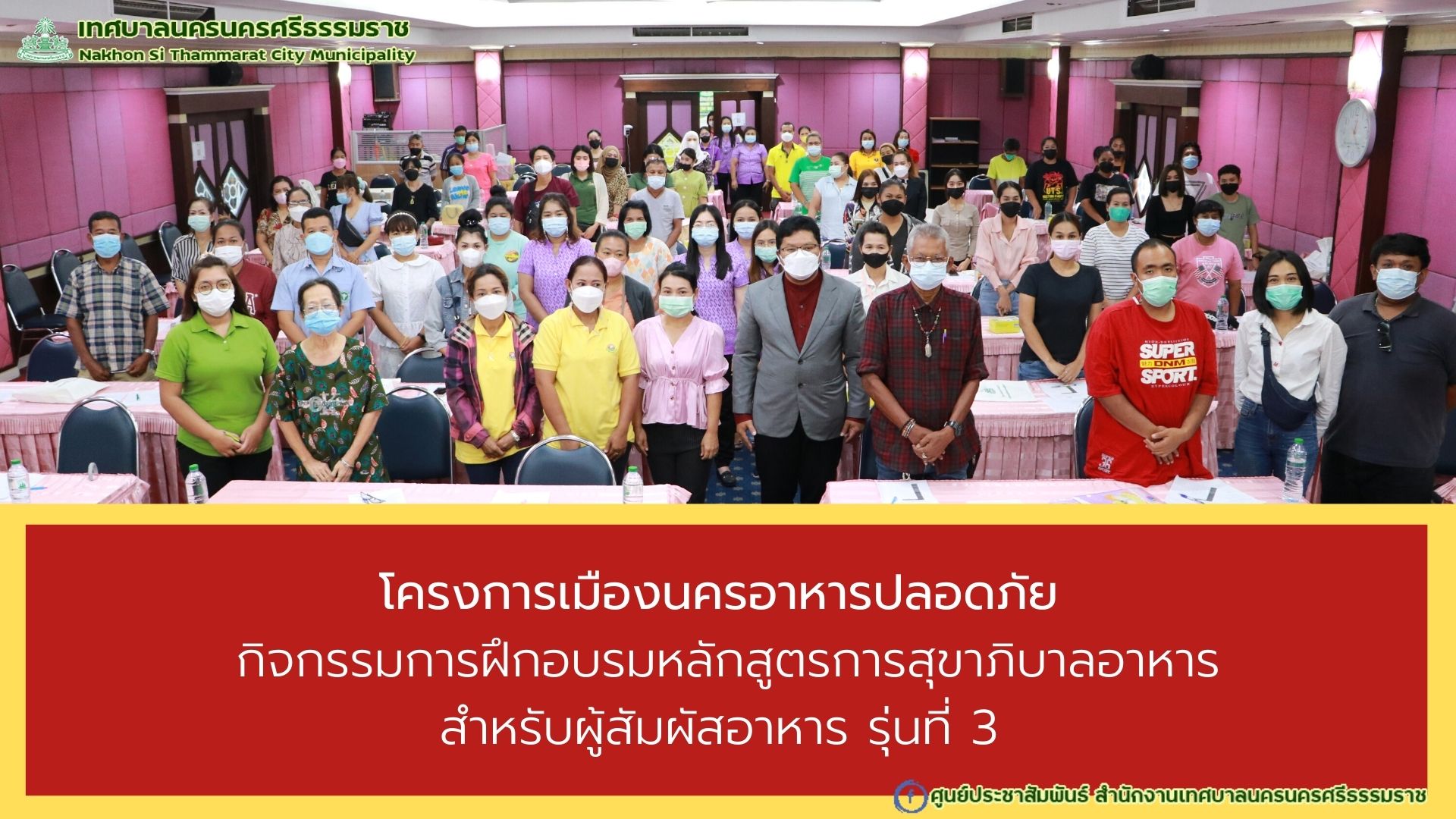 | โครงการเมืองนครอาหารปลอดภัย กิจกรรมการฝึกอบรมหลักสูตรการสุขาภิบาลอาหาร สำหรับผู้สัมผัสอาหาร รุ่นที่ 3 |