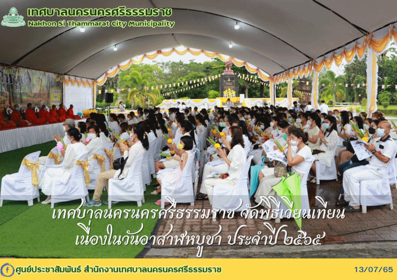 | เทศบาลนครนครศรีธรรมราช จัดพิธีเวียนเทียนเนื่องในวันอาสาฬหบูชา ประจำปี ๒๕๖๕ |
