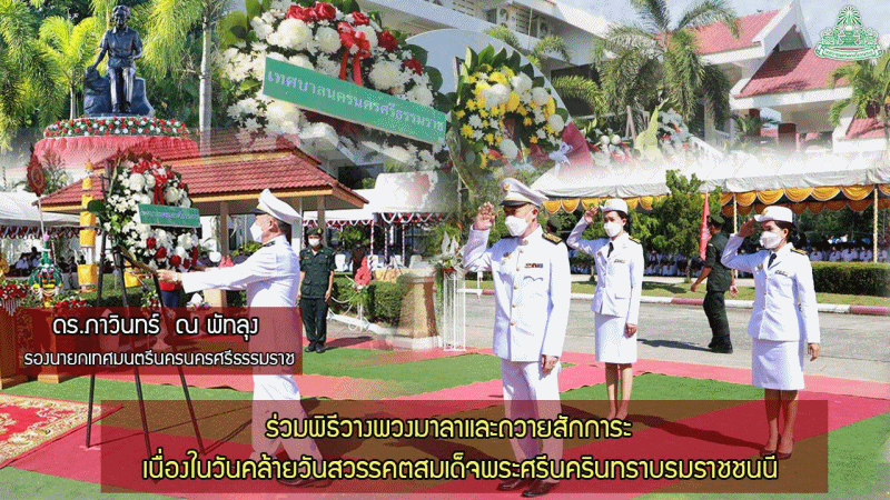 | ดร.ภาวินทร์ ณ พัทลุง รองนายกเทศมนตรีนครนครศรีธรรมราช ร่วมพิธีวางพวงมาลาและถวายราชสักการะ เนื่องในวันคล้ายวันสวรรคตสมเด็จพระศรีนครินทราบรมราชชนนี |