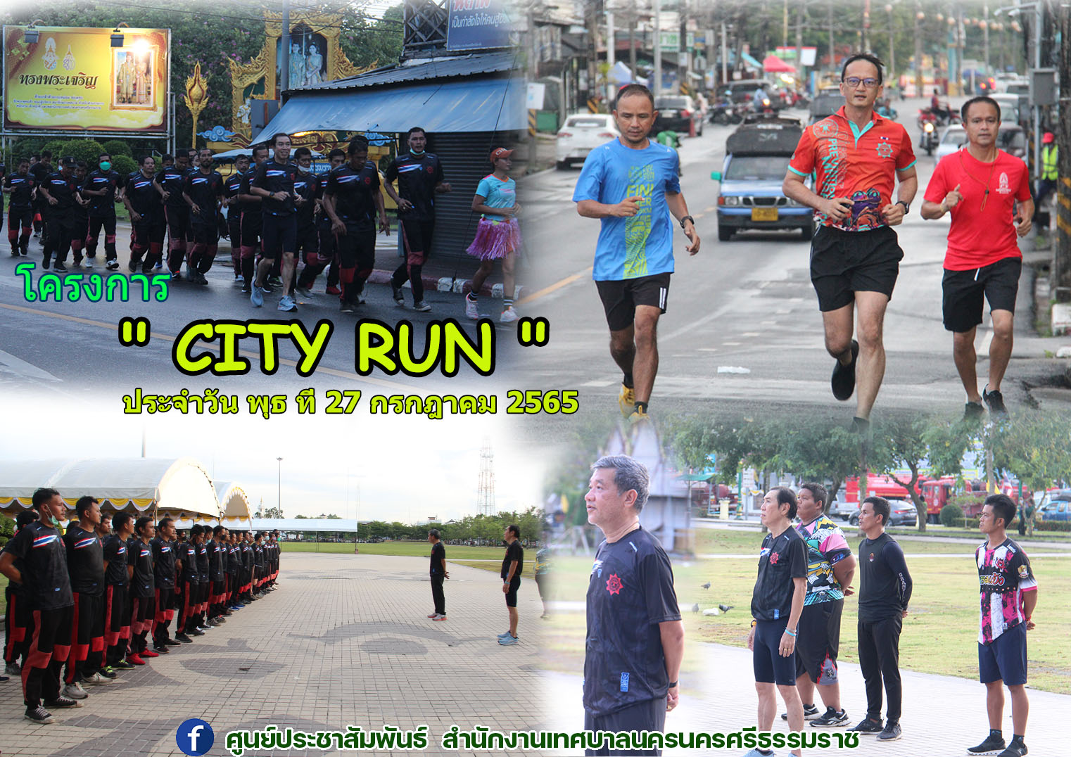 | นายกเทศมนตรีนครนครศรีธรรมราช พร้อมผู้บริหาร เจ้าหน้าที่ป้องกันและบรรเทาสาธารณภัย ประชาชนทั่วไป วิ่งออกกำลังกาย " CITY RUN " ทุกวันพุธ