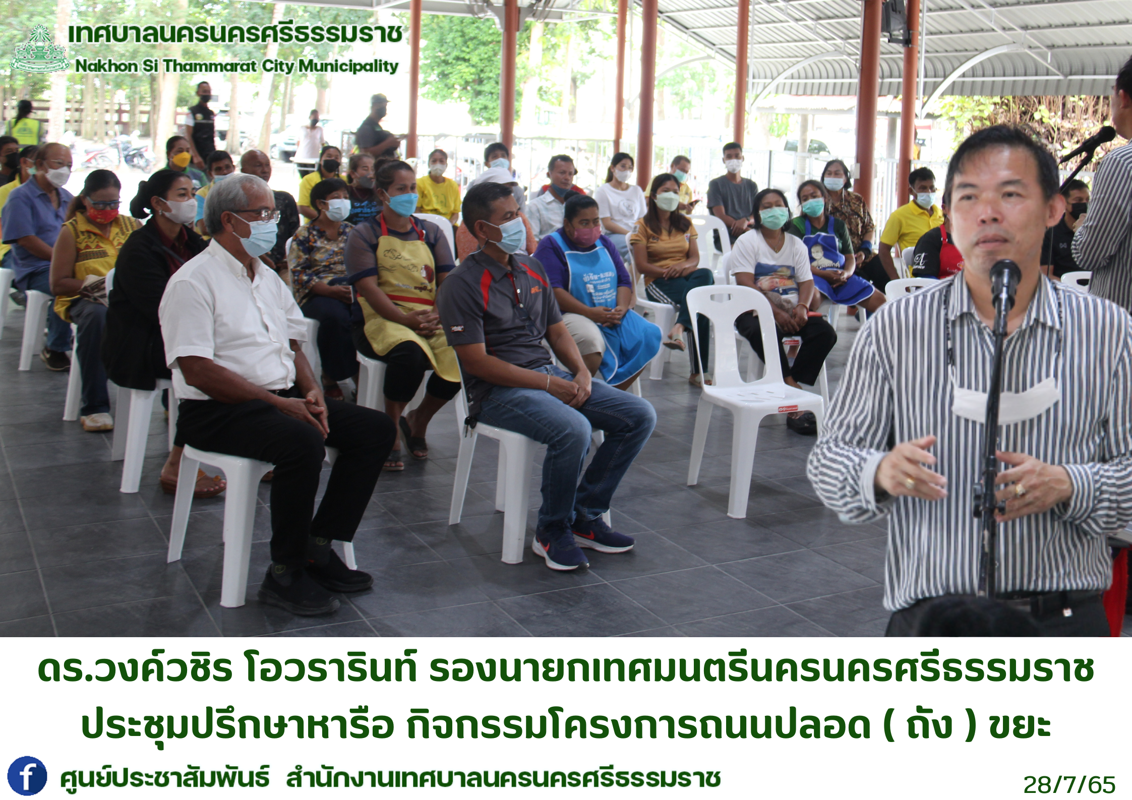 | ดร.วงค์วชิร โอวรารินท์ รองนายกเทศมนตรีนครนครศรีธรรมราช ประชุมปรึกษาหารือ กิจกรรมโครงการถนนปลอด ( ถัง ) ขยะ |