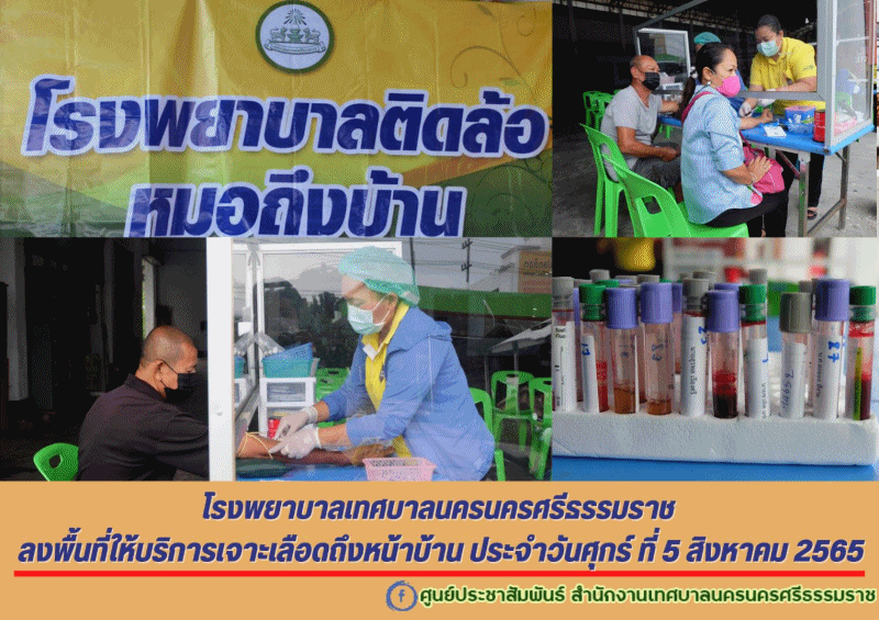 | โรงพยาบาลเทศบาลนครนครศรีธรรมราช ลงพื้นที่ให้บริการเจาะเลือดถึงหน้าบ้าน |