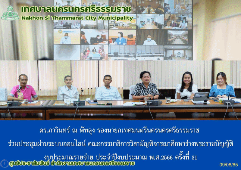 | ดร.ภาวินทร์ ณ พัทลุง รองนายกเทศมนตรีนครนครศรีธรรมราช ร่วมประชุมผ่านระบบออนไลน์ คณะกรรมาธิการวิสามัญพิจารณาศึกษาร่างพระราชบัญญัติงบประมาณรายจ่าย ประจำปีงบประมาณ พ.ศ.2566 ครั้งที่ 31 |