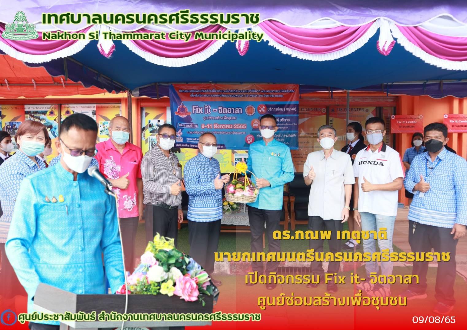 | ดร.กณพ เกตุชาติ นายกเทศมนตรีนครนครศรีธรรมราช ประธานพิธีเปิดกิจกรรมศูนย์ซ่อมสร้างเพื่อชุมชน (Fix it–จิตอาสา) เฉลิมพระเกียรติสมเด็จพระนางเจ้าสิริกิติ์ พระบรมราชินีนาถ พระบรมราชชนนีพันปีหลวง เนื่องในโอกาสมหามงคลเฉลิมพระชนมพรรษา 90 พรรษา(12 สิงหาคม 2565) |