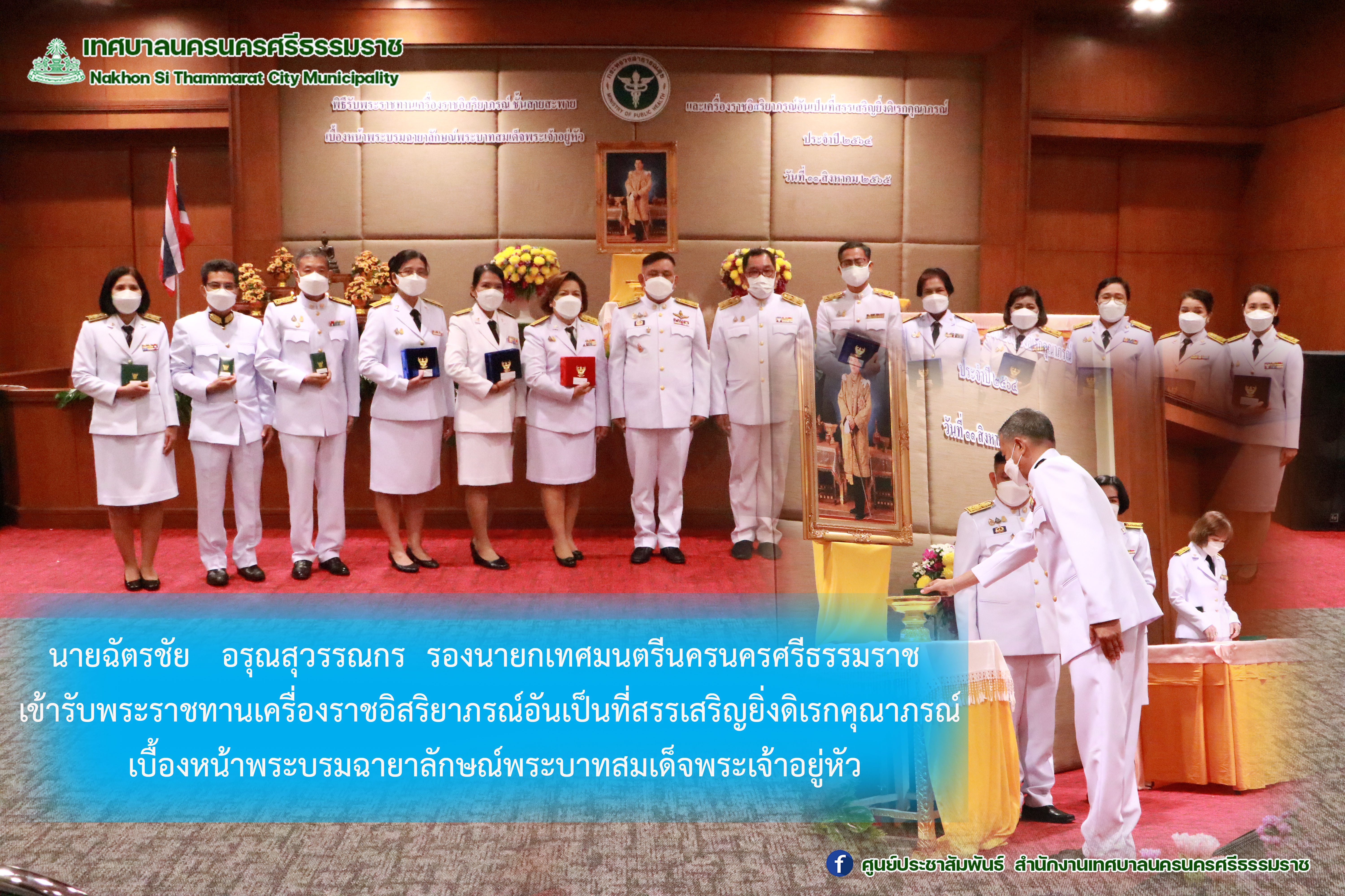 | รองนายกเทศมนตรีนครนครศรีธรรมราช เข้ารับพระราชทานเครื่องราชอิสริยาภรณ์อันเป็นที่สรรเสริญยิ่งดิเรกคุณาภรณ์ เบื้องหน้าพระบรมฉายาลักษณ์พระบาทสมเด็จพระเจ้าอยู่หัว |