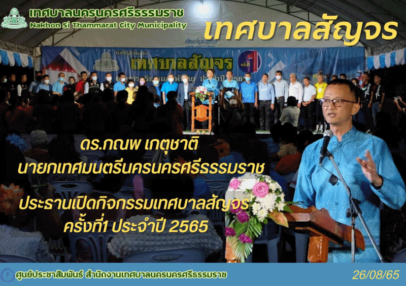 | ดร.กณพ เกตุชาติ นายกเทศมนตรีนครนครศรีธรรมราช ประธานเปิดกิจกรรมเทศบาลสัญจร ครั้งที่1 ประจำปี 2565 |