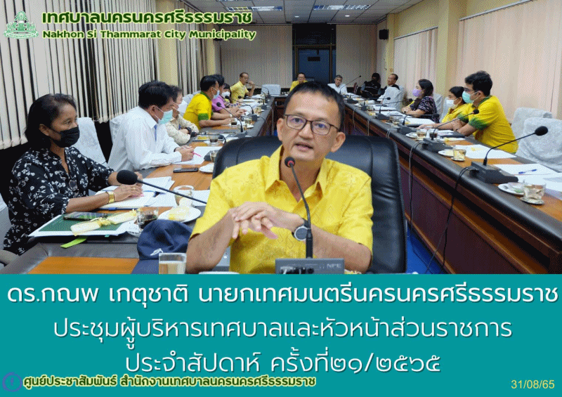 | ดร.กณพ เกตุชาติ นายกเทศมนตรีนครนครศรีธรรมราช ประชุมผู้บริหารเทศบาล และหัวหน้าส่วนราชการ ประจำสัปดาห์ ครั้งที่ 21/2565 |