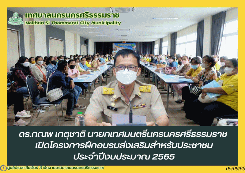 | ดร.กณพ เกตุชาติ นายกเทศมนตรีนครนครศรีธรรมราช เปิดโครงการฝึกอบรมส่งเสริมอาชีพสำหรับประชาชน ประจำปีงบประมาณ 2565 |