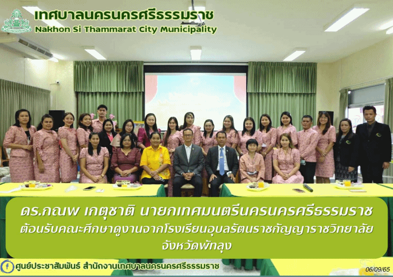 | ดร.กณพ เกตุชาติ นายกเทศมนตรีนครนครศรีธรรมราช ต้อนรับคณะศึกษาดูงานจากโรงเรียนอุบลรัตนราชกัญญาวิทยาลัย จังหวัดพัทลุง |