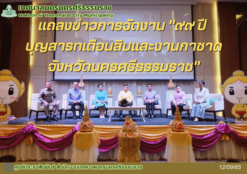 | ดร.กณพ เกตุชาติ นายกเทศมนตรีนครนครศรีธรรมราช ร่วมเป็นเกียรติงานแถลงข่าวบุญสารทเดือนสิบและงานกาชาดจังหวัดนครศรีธรรมราช ระหว่างวันที่ 19-28 กันยายน 2565 |