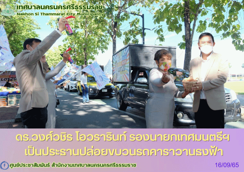 | ดร.วงศ์วชิร โอวรารินท์ รองนายกเทศมนตรีนครนครศรีธรรมราช เป็นประธานปล่อยขบวนรถคาราวานธงฟ้า |