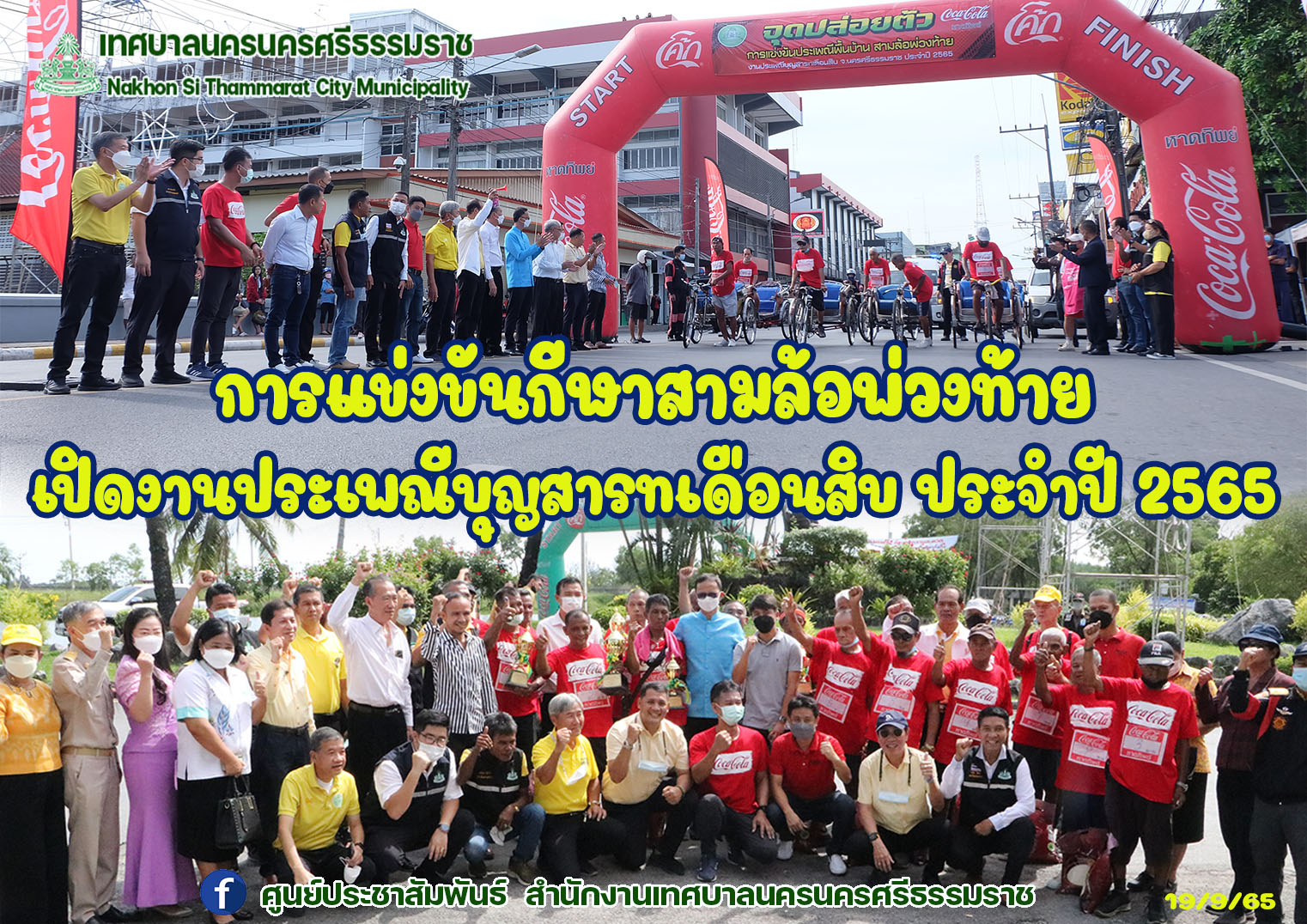 วันจันทร์ที่ 19 กันยายน พ.ศ. 2565 เวลา 09.00 น. ณ บริเวณถนนคนเดินหน้าสวนพระเงิน ดร.กณพ เกตุชาติ นายกเทศมนตรีนครนครศรีธรรมราช เป็นประธานในพิธีเปิดการแข่งขันกีฬาสามล้อพ่วงท้าย เปิดงานประเพณีบุญสารทเดือนสิบ ประจำปี 2565 ซึ่งฝ่ายป้องกันและบรรเทาสาธารณภัย สำนักปลัดเทศบาล จัดกิจกรรมการแข่งขันสามล้อพ่วงท้ายขึ้น โดยใช้เส้นทางการแข่งขันตั้งแต่บริเวณ ถนนคนเดินหน้าสวนพระเงิน ถึงเส้นชัย บริเวณหน้าสวนสัตว์เปิด สวนสมเด็จพระศรีนครินทร์ '84 (ทุ่งท่าลาด) ทั้งนี้เพื่อส่งเสริมอนุรักษ์สามล้อถีบ ซึ่งเป็นตำนานรถสามล้อโดยสารที่มีมาแต่อดีตกาลของนครศรีธรรมราช  และส่งเสริมรักษาประเพณีงานบุญสารทเดือนสิบให้อยู่คู่จังหวัดนครศรีธรรมราช ให้คงไว้สืบไป รุ่นอายุ 45-59 ปี รางวัลชนะเลิศ อันดับ 1 ได้แก่ นายสมรักษ์ เจ๊ะสมัน รางวัลชนะเลิศ อันดับ 2 ได้แก่ นายบัญหาร ช่วยเหลือ รางวัลชนะเลิศ อันดับ 3 ได้แก่ นายประดิษฐ์ ดาราจร รุ่นอายุ 60-70 ปี รางวัลชนะเลิศ อันดับ 1 ได้แก่ นายประภาส ตรงต่อการ รางวัลชนะเลิศ อันดับ 2 ได้แก่ นายสมศักดิ์ โพธิ์น้อย รางวัลชนะเลิศ อันดับ 3 ได้แก่ นายสุชล สิงจตรีพงษ์ รุ่นอายุ 71 ปี ขึ้นไป รางวัลชนะเลิศ อันดับ 1 ได้แก่ นายไชยรงค์ กาบแก้ว รางวัลชนะเลิศ อันดับ 2 ได้แก่ นายชุมพล สุปรานนท์ รางวัลชนะเลิศ อันดับ 3 ได้แก่ นายวิเชียร ภักดิ์ษา โดยรางวัลชนะเลิศ อันดับ 1 รับเงินสด 4,000 บาท พร้อมถ้วยรางวัล และข้าวสาร 1 ถุง รางวัลชนะเลิศ อันดับ 2 รับเงินสด 2,500 บาท พร้อมถ้วยรางวัล และข้าวสาร 1 ถุง รางวัลชนะเลิศ อันดับ 3 รับเงินสด 1,500 บาท พร้อมถ้วยรางวัล และข้าวสาร 1 ถุง และผู้เข้าร่วมการแข่งขันจะได้รับเงินสด จำนวน 1,000 บาท พร้อมข้าวสาร 1 ถุง ทุกท่าน