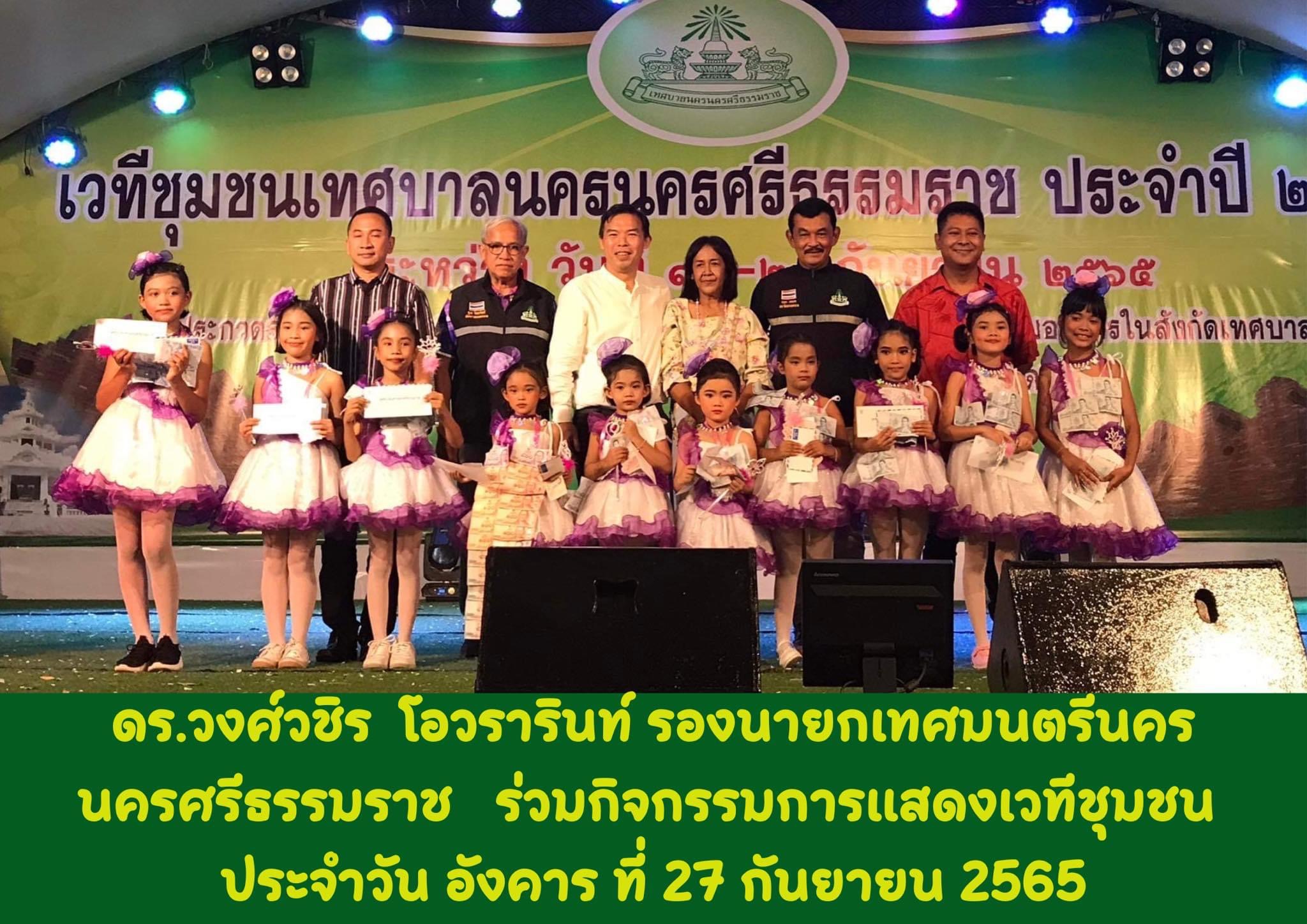 | ดร.วงศ์วชิร โอวรารินท์ รองนายกเทศมนตรีนครนครศรีธรรมราช ร่วมกิจกรรมการแสดงเวทีชุมชน ในงานประเพณีบุญสารทเดือนสิบ ประจำปี 2565 |