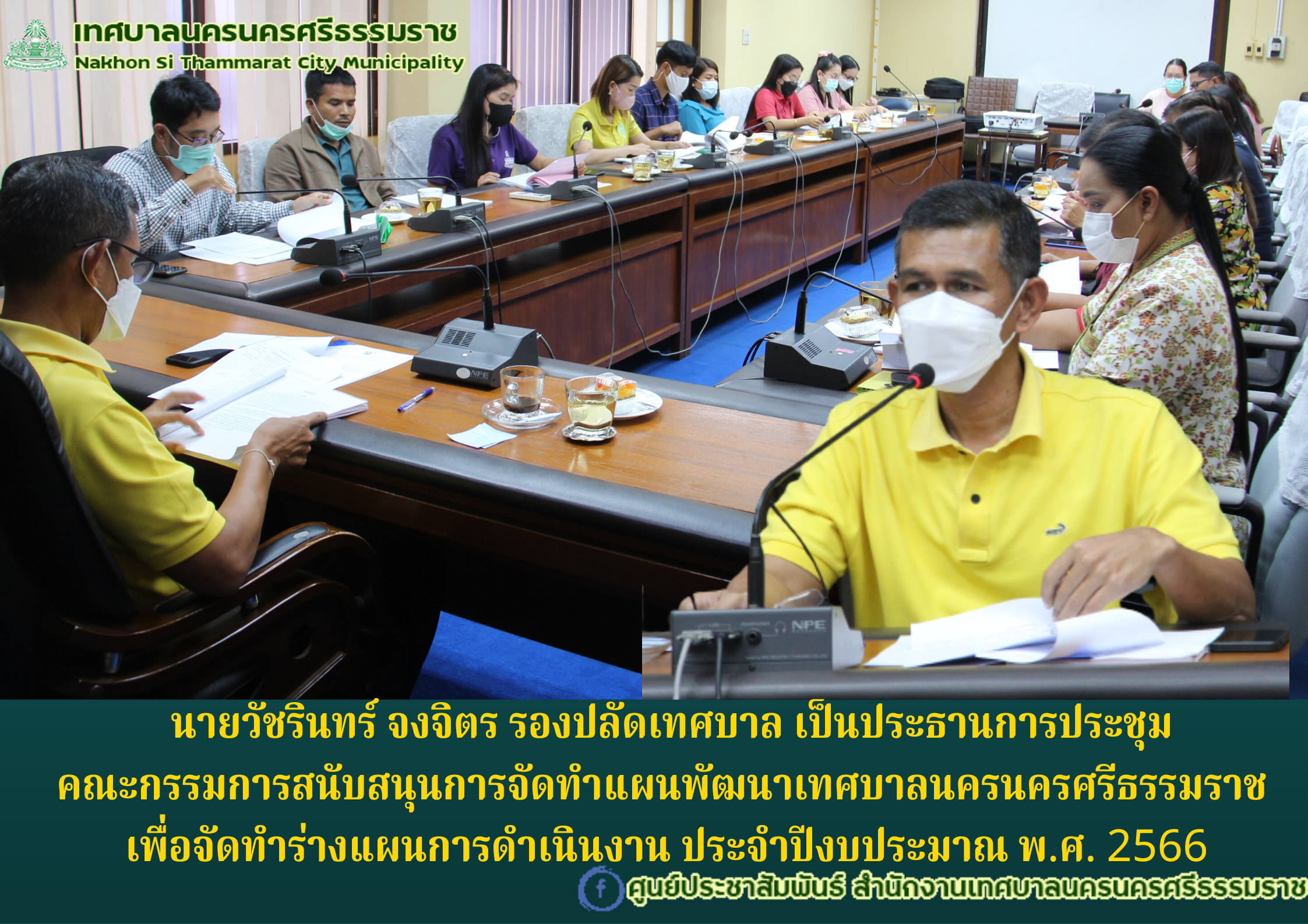 | นายวัชรินทร์ จงจิตร รองปลัดเทศบาล เป็นประธานการประชุม คณะกรรมการสนับสนุนการจัดทำแผนพัฒนาเทศบาลนครนครศรีธรรมราช เพื่อจัดทำร่างแผนการดำเนินงาน ประจำปีงบประมาณ พ.ศ. 2566 |