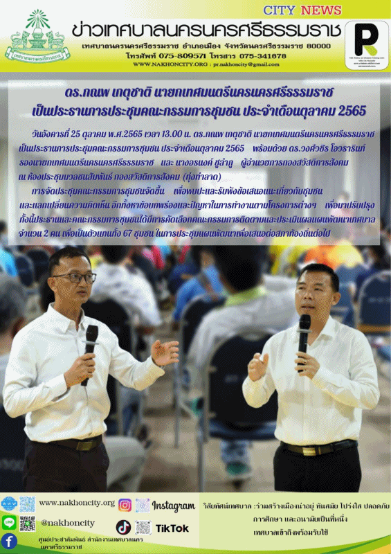 | ดร.กณพ เกตุชาติ นายกเทศมนตรีนครนครศรีธรรมราช เป็นประธานการประชุมคณะกรรมการชุมชน ประจำเดือนตุลาคม 2565 |