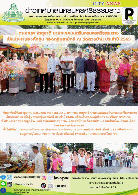 | ดร.กณพ เกตุชาติ นายกเทศมนตรีนครนครศรีธรรมราช เป็นประธานองค์กฐิน ทอดกฐินสามัคคี ณ วัดสวนป่าน ประจำปี 2565 |