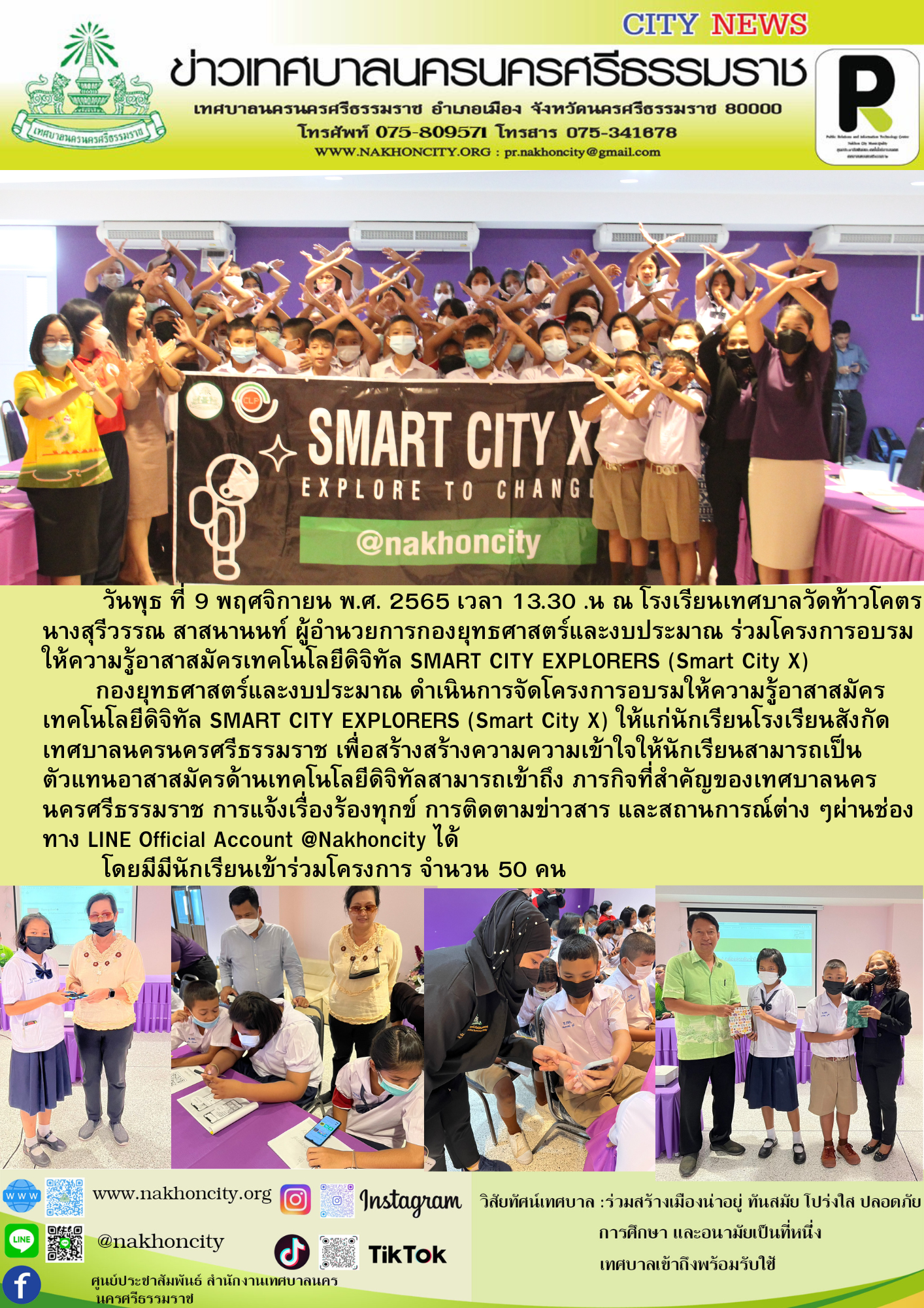 | เทศบาลนครนครศรีธรรมราช โดยกองยุทธศาสตร์และงบประมาณ จัดโครงการอบรมให้ความรู้อาสาสมัครเทคโนโลยีดิจิทัล SMART CITY EXPLORERS (Smart City X) |