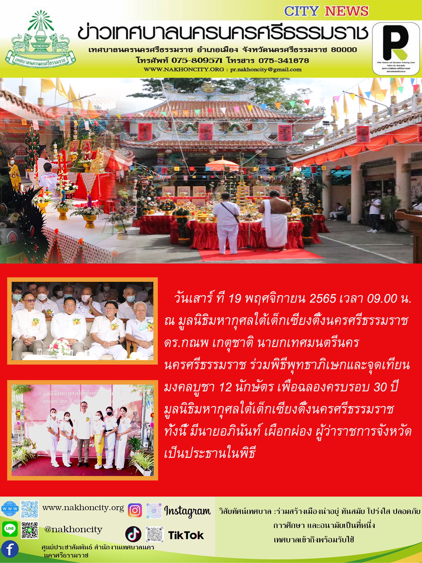 | นายกเทศมนตรีนครนครศรีธรรมราช ร่วมพิธีพุทธาภิเษกและจุดเทียนมงคลบูชา 12 นักษัตร เพื่อฉลองครบรอบ 30 ปี มูลนิธิมหากุศลใต้เต็กเซี่ยงตึ๊งนครศรีธรรมราช |